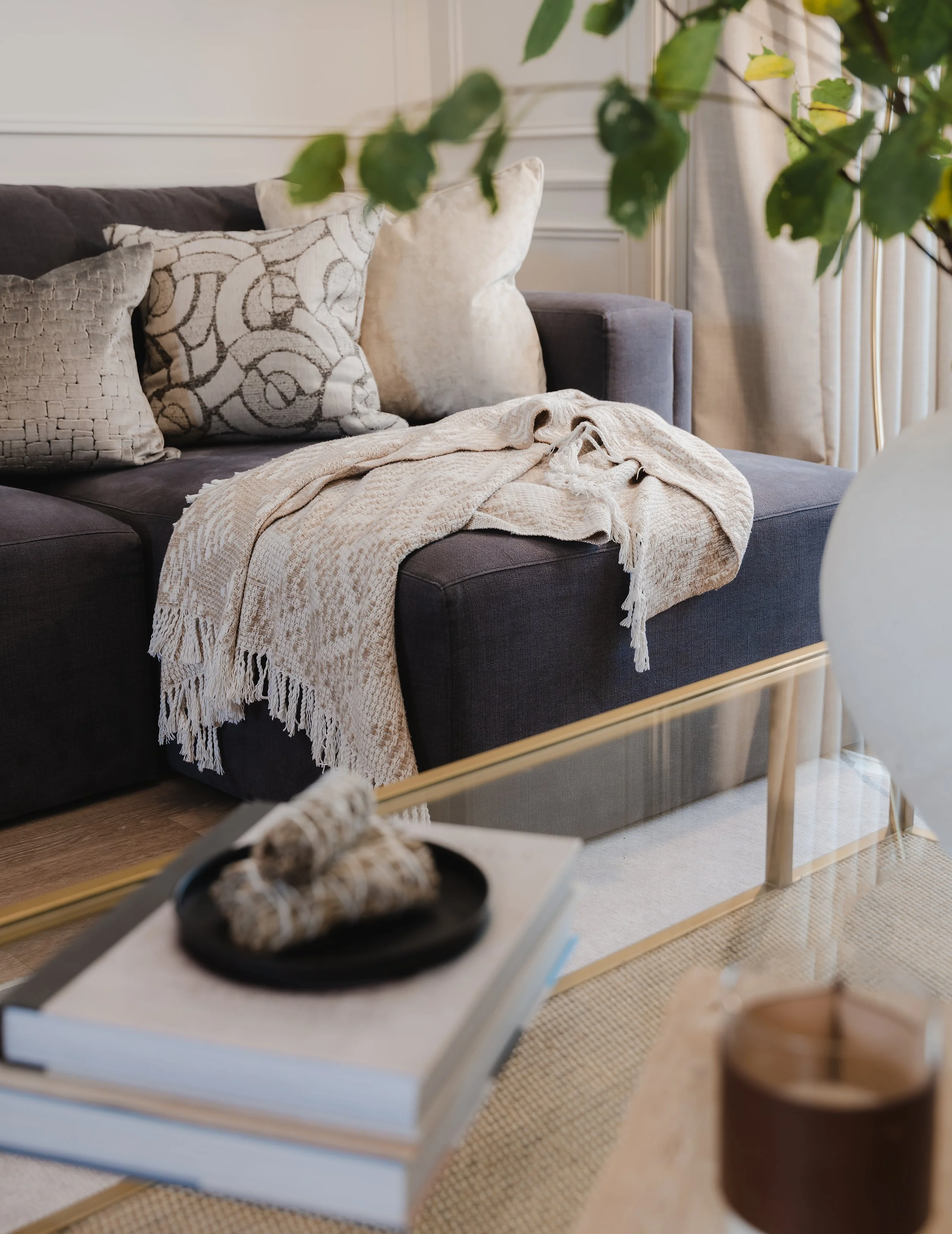 Layered neutrals, tactile fabrics and natural finishes anchor the space, with subtle nods to the coastal landscape just beyond the trees. Clean architectural lines keep things refined and uncluttered, while carefully chosen vintage pieces add character and history. Every element was considered, from the tailored joinery to the understated lighting — creating a home that feels both composed and completely lived-in.